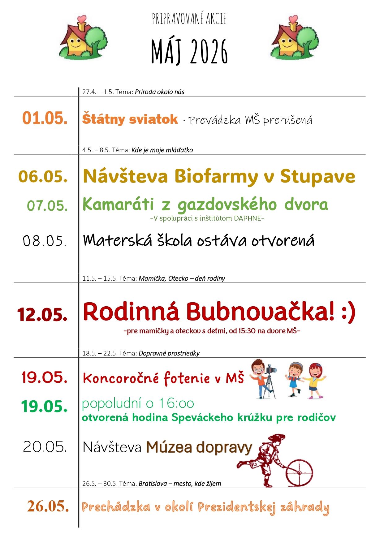 - Informácie o škôlke si sledujte na nástenkách v šatni, na tejto webovej stránke, prípadne na FB stránke, aby Vám neunikli dôležité informácie:)